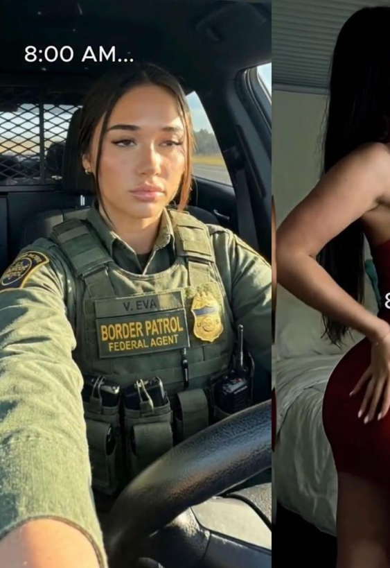 An ICE agent has gone viral after sharing a short video revealing the contrast between her on-duty appearance and her life after work. In the first clip, she’s in full uniform — tactical vest, badge visible, serious expression behind the wheel of a patrol vehicle. Hours later, the video transitions to her off-duty look: dressed up, confident, and ready for her evening plans. The side-by-side comparison quickly gained traction, sparking both admiration and debate online.