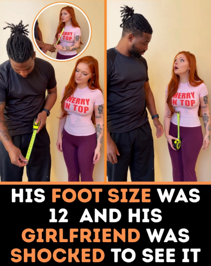 His foot measured a staggering 12 inches, leaving everyone surprised—but his girlfriend’s reaction was priceless. She couldn’t hide her shock when she saw just how unusually large his feet were, making the moment both funny and unforgettable.