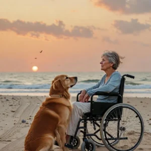 Every Morning She Sat by the Ocean in Her Wheelchair With Her Loyal Dog — Until One Day, He Started Barking Like Crazy And What She Found Buried In The Sand Made Her Scream.