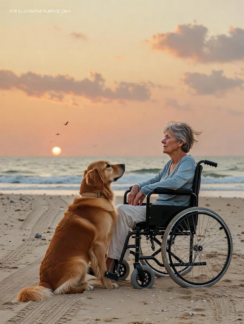 Every morning at dawn, before the sun rose high enough to bleach the sky, Clara Bennett wheeled herself down the narrow wooden path that led to the beach. Her companion — a golden retriever named Buddy — walked faithfully beside her, his fur glistening with salt and morning dew. To the locals, she was a familiar sight — the quiet woman in the wheelchair who came to watch the sea.